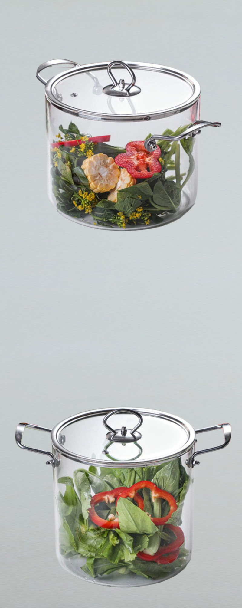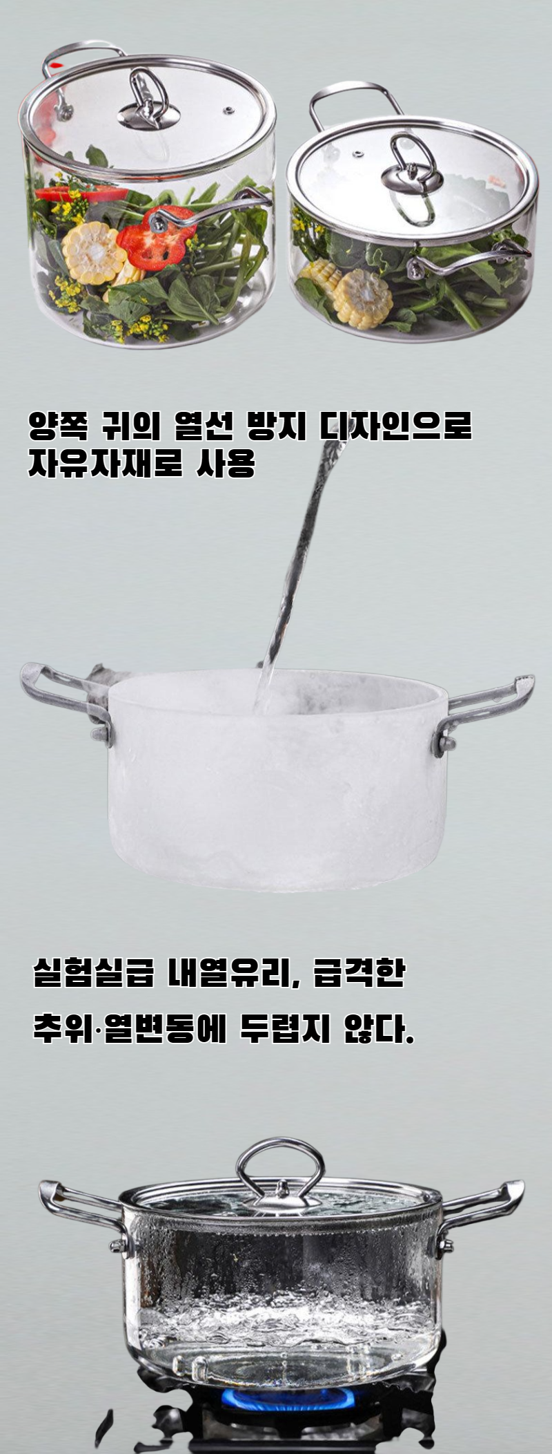 고붕소 실리콘 쌍귀 유리솥, 내열성 우수, 투명 디자인, 위생적 사용, 실리콘 손잡이로 안전성 강화, 다양한 요리에 적합